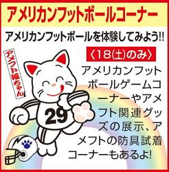 アメリカンフットボールゲームコーナーやアメフト関連グッズの展示、